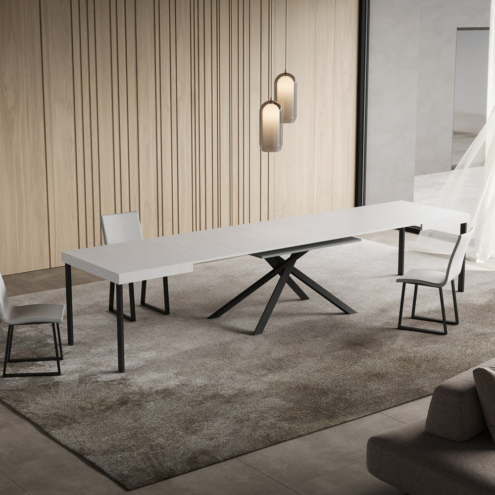 Tavolo allungabile 90x130/390 cm Garda bianco frassino gambe antracite