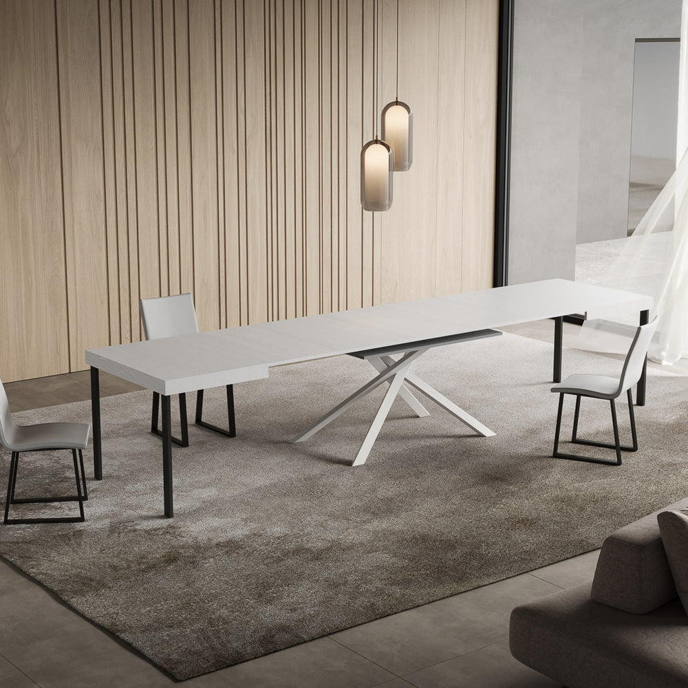 Tavolo allungabile 90x130/390 cm Garda bianco frassino gambe bianche