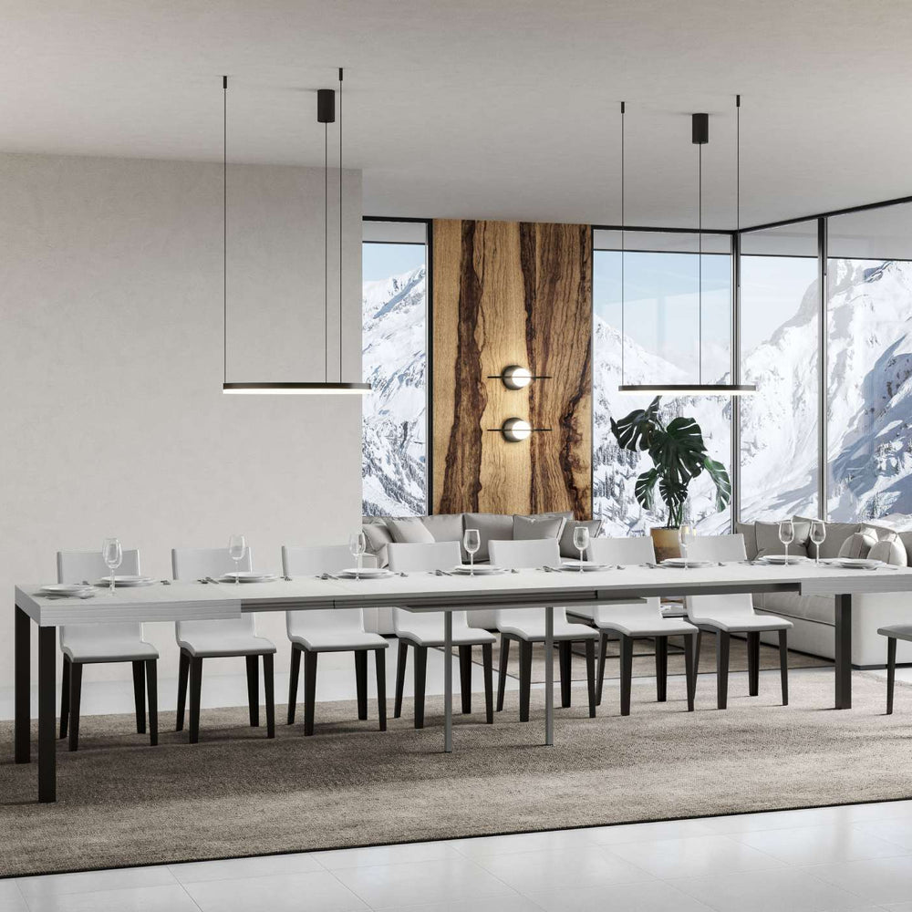 Tavolo allungabile 90x130/390 cm Noventa Bianco Frassino telaio Antracite