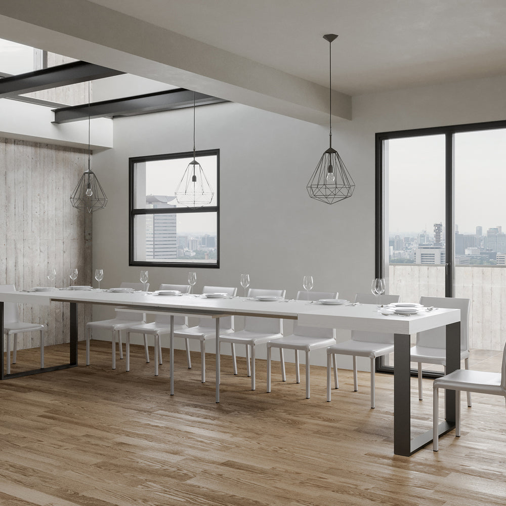 Tavolo allungabile 90x130/390 cm Pieve Bianco Frassino telaio Antracite