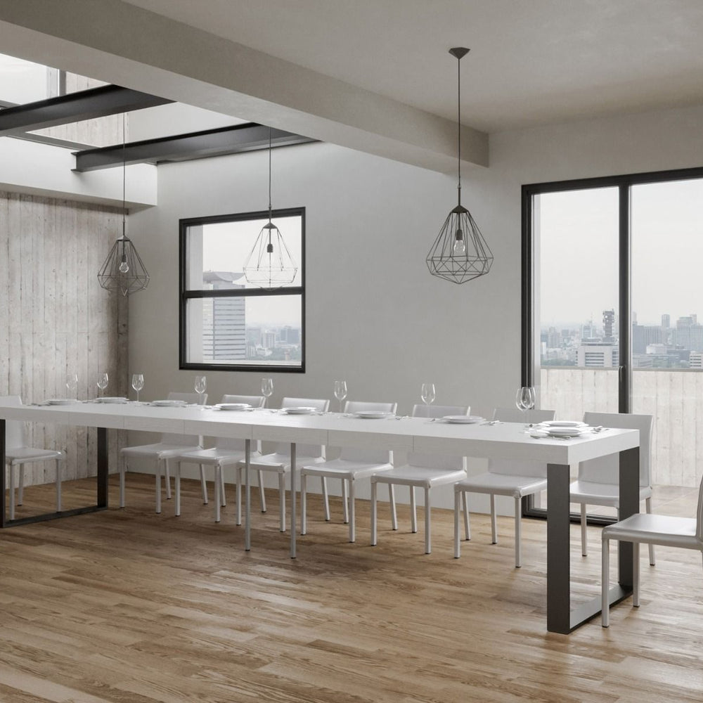Tavolo allungabile 90x130/390 cm Pieve Premium Bianco Frassino telaio Antracite