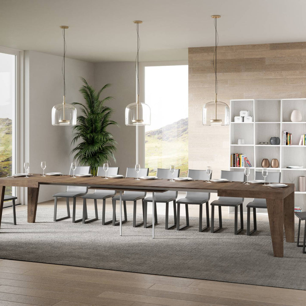 Tavolo allungabile Salzano da 130 cm, dal design geometrico essenziale, si adatta a qualsiasi stile di arredamento e si rivela la scelta ideale sia come tavolo da pranzo che come elemento d'arredo per il soggiorno, dove poter accogliere i propri ospiti con stile.Il tavolo allungabile Salzano è in grado di estendersi progressivamente fino a 390 cm capace di ospitare 16 persone.Realizzato interamente con pannelli in nobilitato, piano con lavorazione a Folding.Il sistema di estensione con guide telescopiche in alluminio e il sostegno centrale in dotazione rendono il tavolo stabile e robusto anche se totalmente allungato.Due allunghe sono alloggiate sotto il piano pronte all'utilizzo mentre le rimanenti tre vanno riposte altrove.Made in ItalyDimensioni:Tavolo chiuso: L.130 P.90 H.77 cmLunghezza con 1 allunga: 182 cmLunghezza con 2 allunghe: 234 cmLunghezza con 3 allunghe: 286 cmLunghezza con 4 allunghe: 338 cmLunghezza con 5 allunghe: 390 cm
