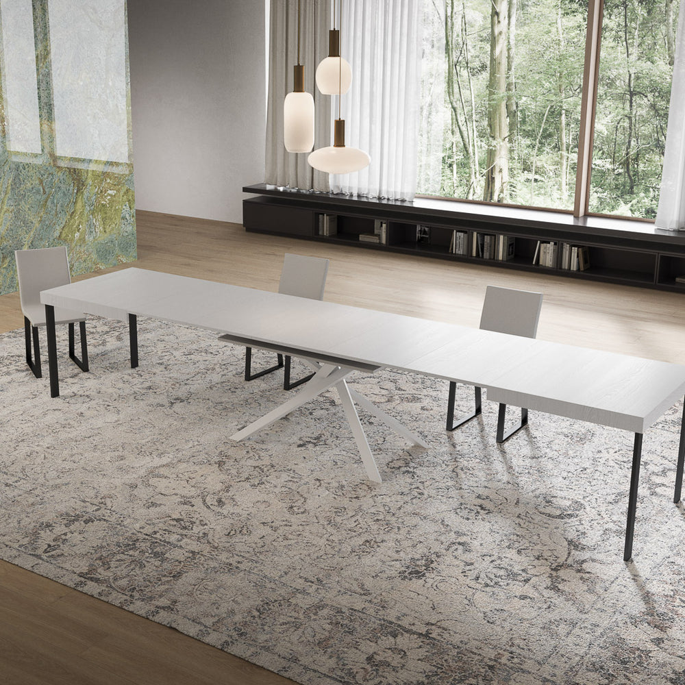 Tavolo allungabile 90x160/420 cm Garda bianco frassino gambe bianche