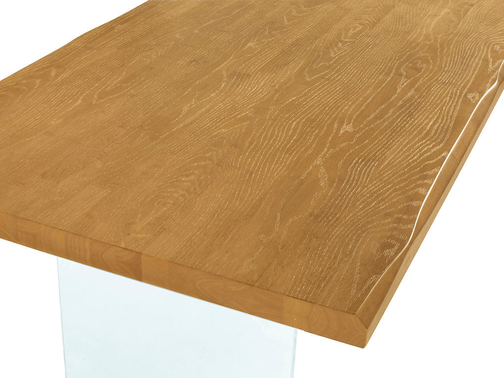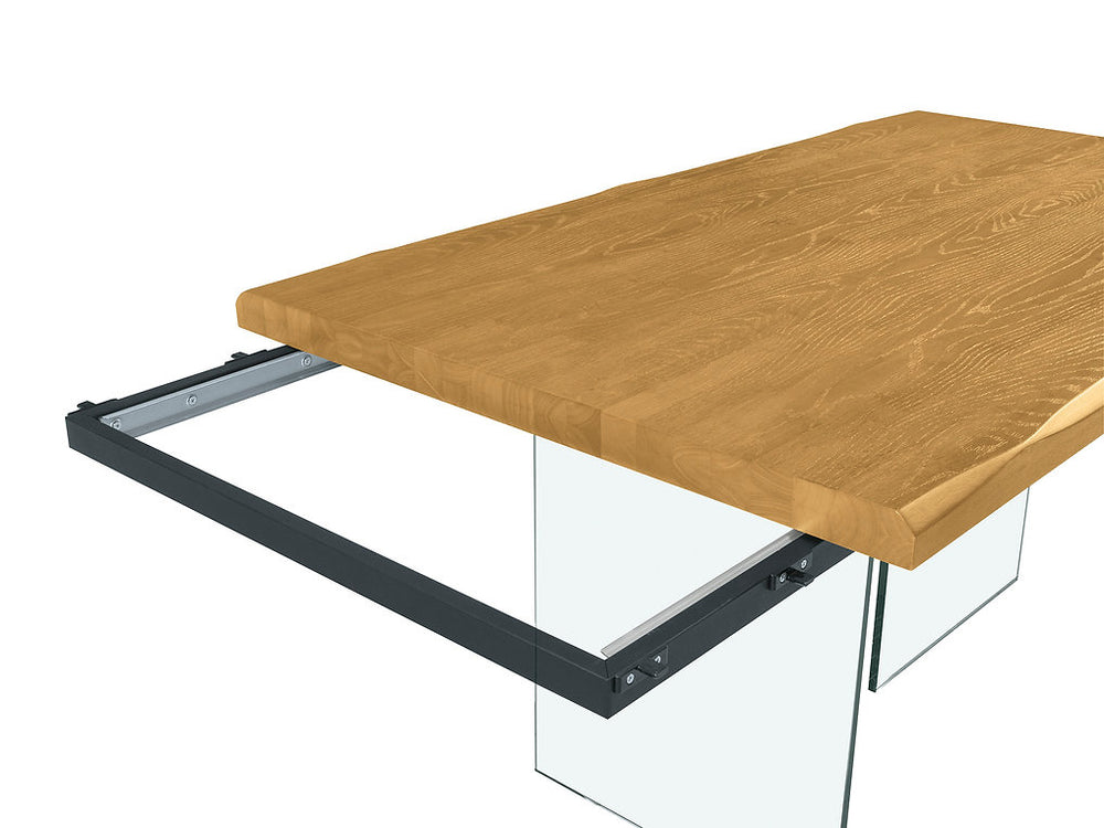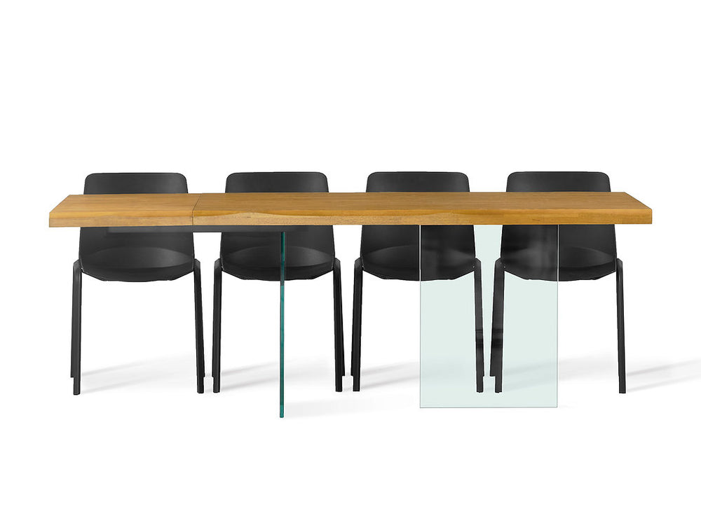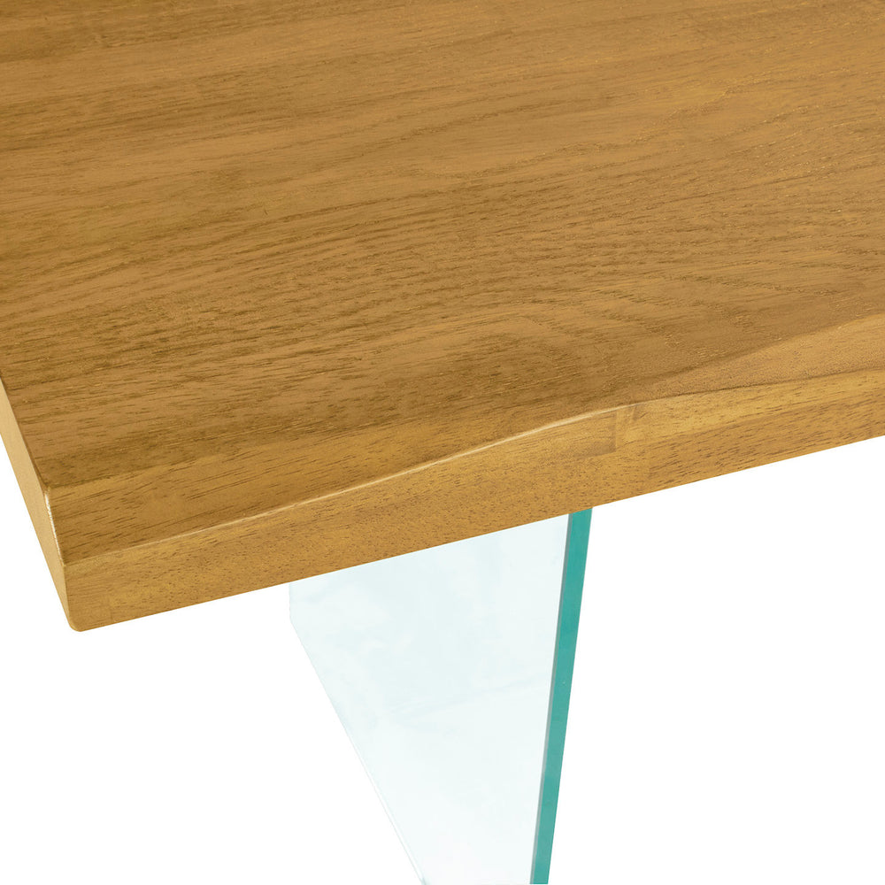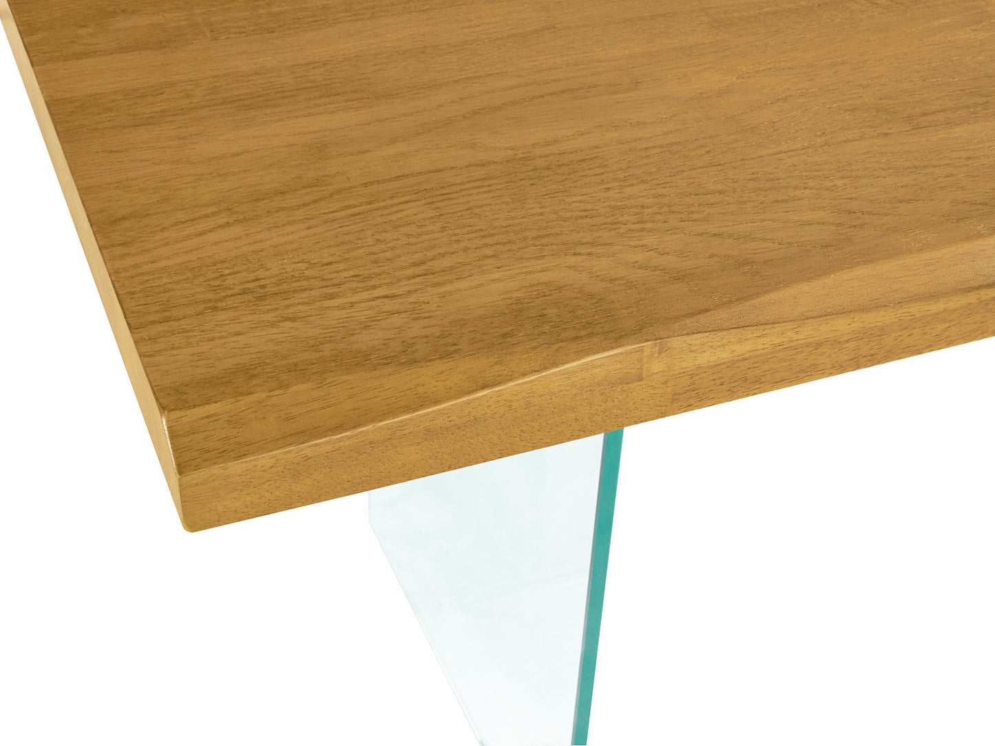 Il Tavolo Verona in vetro lungo 160 cm rappresenta un'ottima scelta per chi cerca un complemento d'arredo moderno e versatile per la zona living o la cucina. La sua struttura combina un piano in legno massello, caratterizzato da uno spessore importante e un profilo "scortecciato", con gambe in cristallo trasparente che conferiscono un tocco di eleganza e design contemporaneo. Le gambe in cristallo sono particolarmente innovative, in quanto possono essere disposte in diverse configurazioni: allineate in modo perpendicolare o parallelo, oppure inclinate di 30° per un effetto visivo originale. Questa flessibilità non solo permette di personalizzare l'aspetto del tavolo, ma offre anche la possibilità di adattarlo a diverse esigenze di spazio e stile. In aggiunta, il Tavolo Verona è progettato per essere allungato, offrendo due tipologie di allunghe: una estraibile, che si aggancia a un telaio metallico sotto il piano, e una prolunga mobile con gambe da fissare sotto il piano quando necessario. Entrambe le opzioni di allunghe sono concepite per essere riposte in un ambiente separato e possono essere scelte singolarmente o in coppia, permettendo di adattare il tavolo a diverse situazioni, come cene con amici o riunioni familiari. Il tavolo è già predisposto per l'installazione delle allunghe, che possono essere aggiunte anche in un secondo momento. Questa caratteristica, insieme al suo design curato e alla qualità dei materiali, fa del Tavolo Verona un elemento di arredo altamente funzionale e di grande impatto estetico. Rigorosamente Made in Italy Dimensioni: Lunghezza 160 cm; Profondità 90cm; Altezza 76 cm (Allunghe optional non incluse) Peso: 51 kg