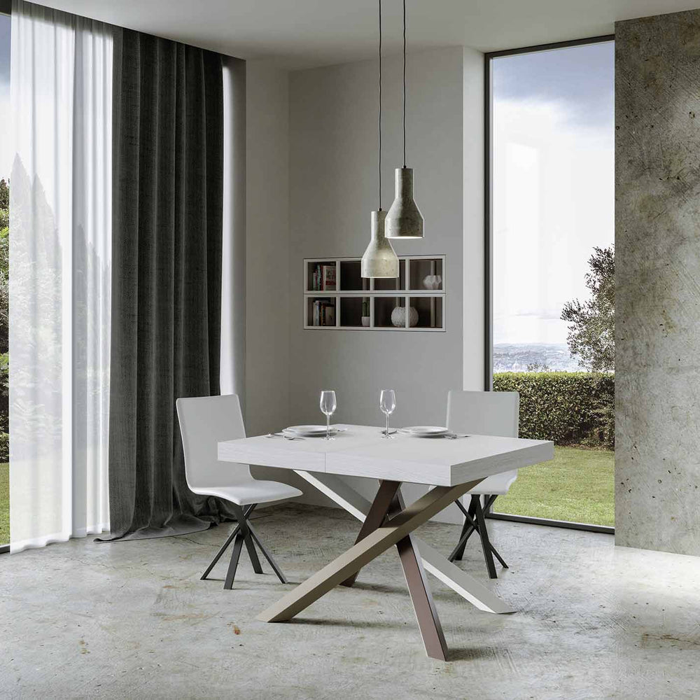 Tavolo allungabile 90x200/460 cm Garda cemento gambe bianche