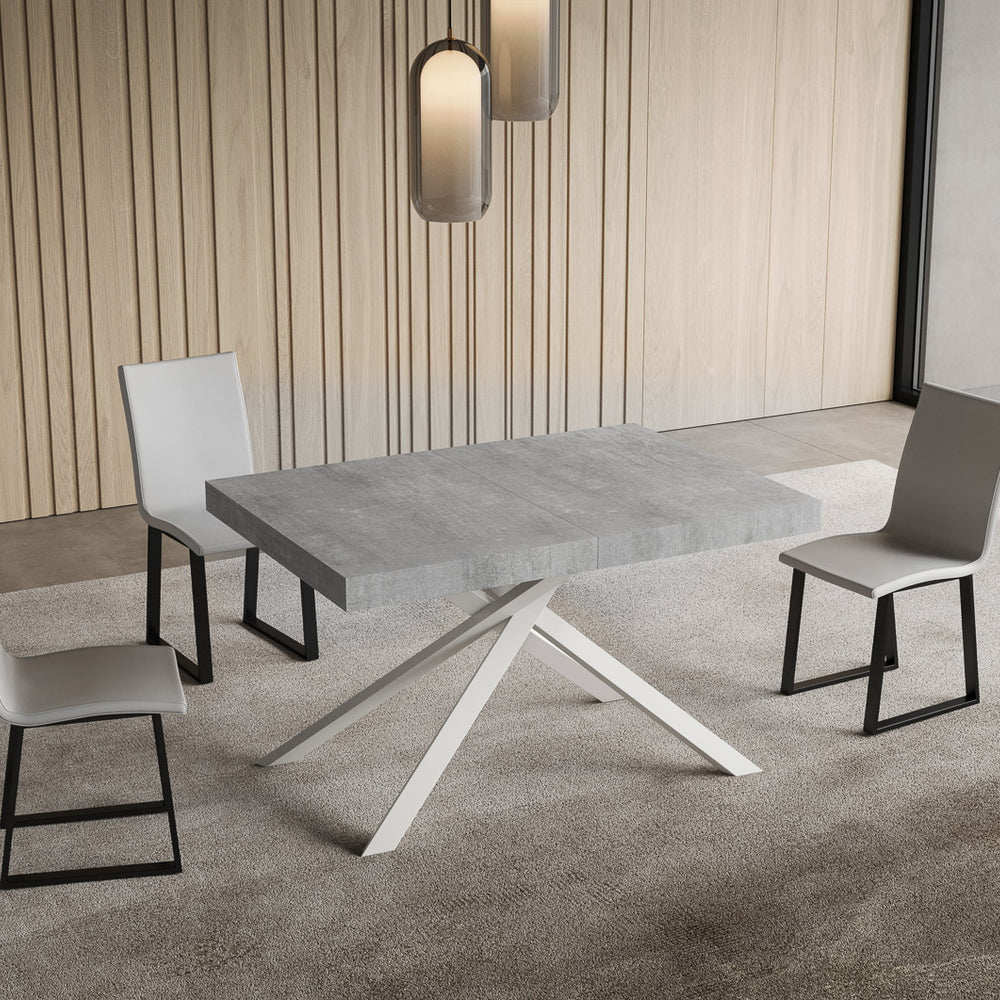 Tavolo allungabile 90x160/420 cm Garda cemento gambe bianche