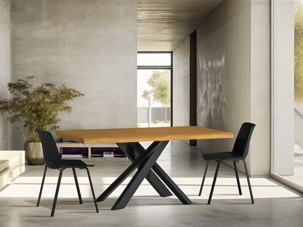 Careg serie Regis Tavolo Domus con piano rovere nodato 180x90 cm chiuso (aperto 280x90) e struttura in metallo verniciato nero