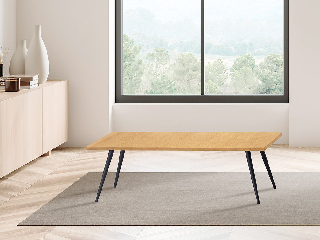Tavolino Tarso da 90 cm è essenziale nelle sue forme, ma dal carattere forte come il materiale con cui è costruito: il Legno Massiccio. Il tavolino rettangolare, è un complemento che ben si adatta a tutti i tipi di arredo ed ambiente living. Adatto ad una collocazione sia fronte che lato divano, o per la sala d’attesa di uno studio. Il tavolino ha una struttura in metallo: si regge su quattro robuste gambe coniche, verniciate nelle colorazioni nero opaco.Il piano è in legno massello con profilo squadrato e si fonde con il metallo per creare un gioco armonioso di linee e materia. Disponibile in due misure 100x50 e 90x50 cm. Dimensioni: Lunghezza 90 cm; Profondità 50 cm; Altezza 33 cm Peso: 21 kg