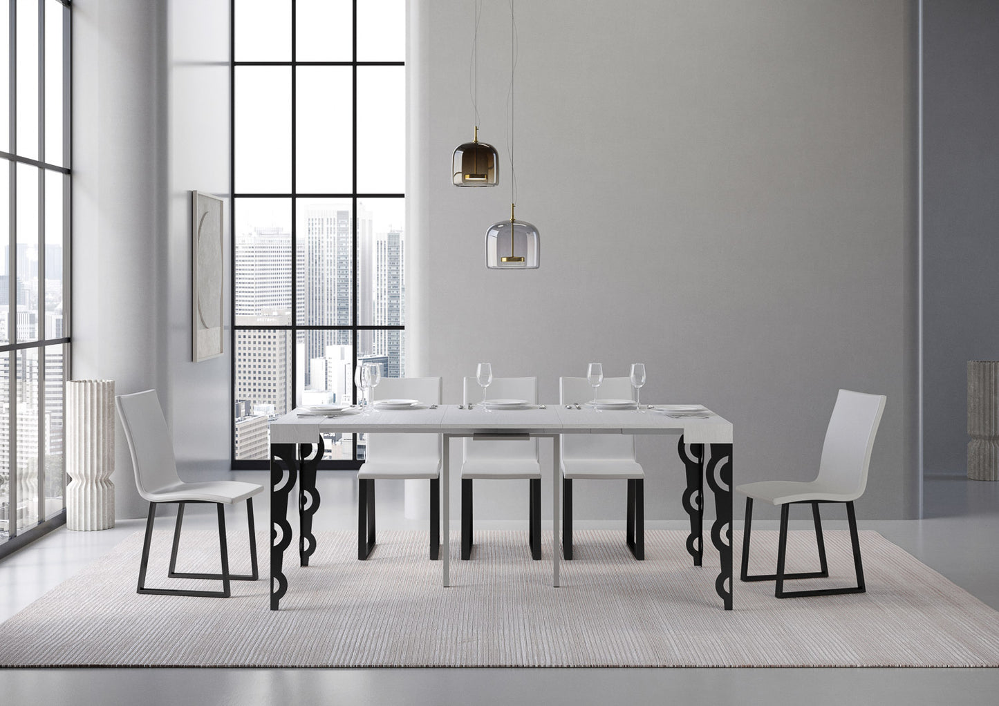 Consolle allungabile 90x40/196 cm Noale Small Bianco Frassino telaio Antracite