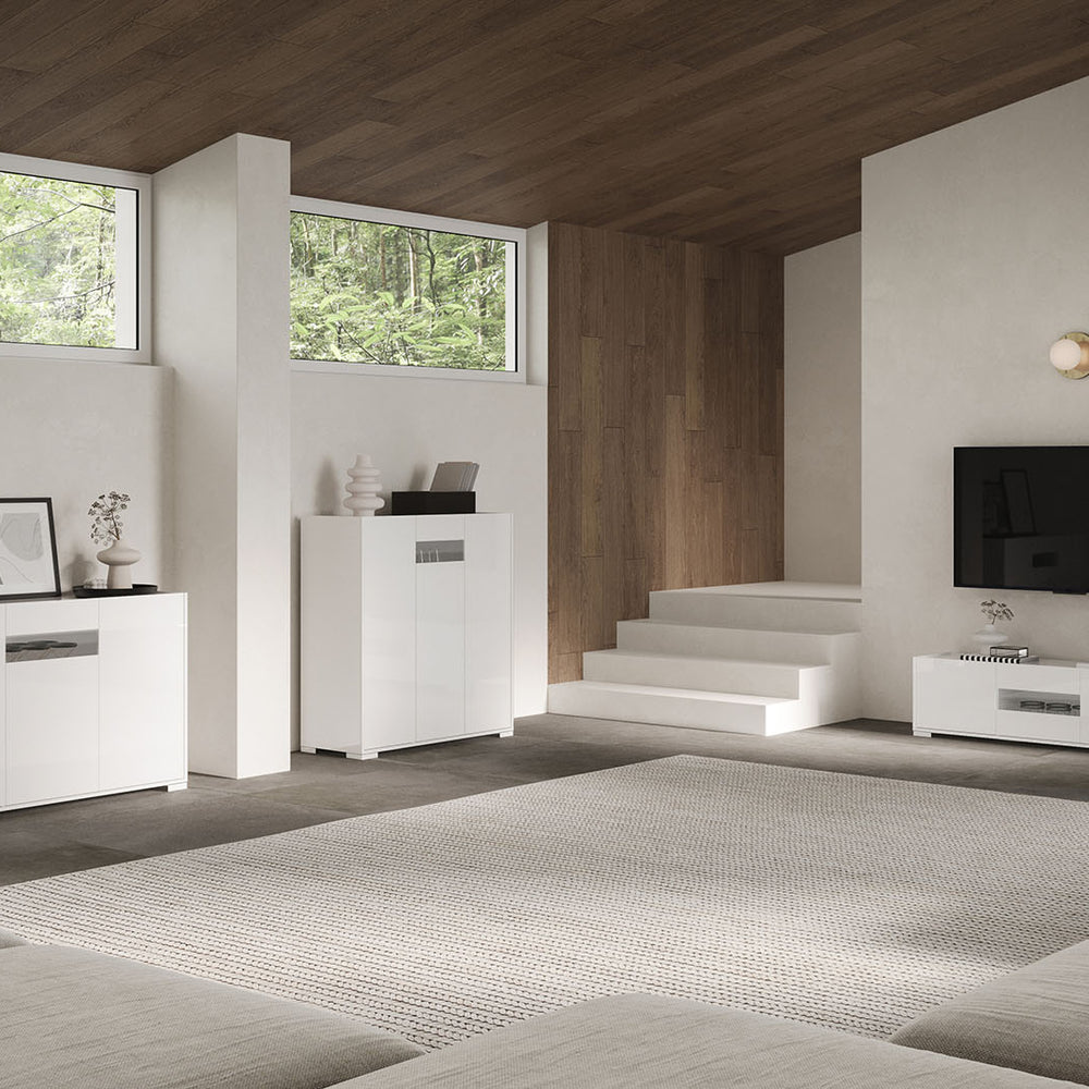 Credenza alta 3 ante 100x35x110 cm Buscole bianco lucido