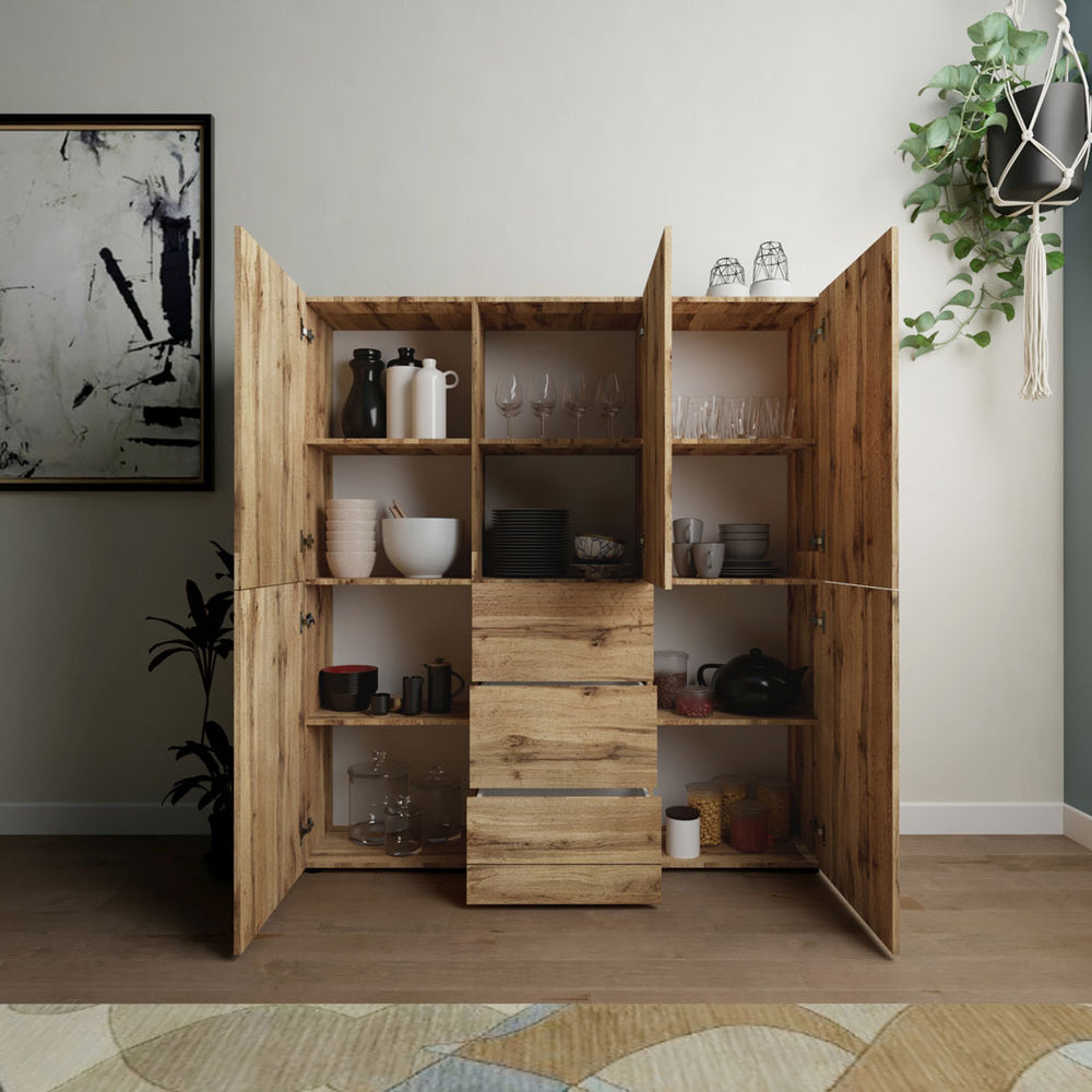 Credenza alta 5 ante/3 cassetti 150x35x165 cm Fassa quercia natura
