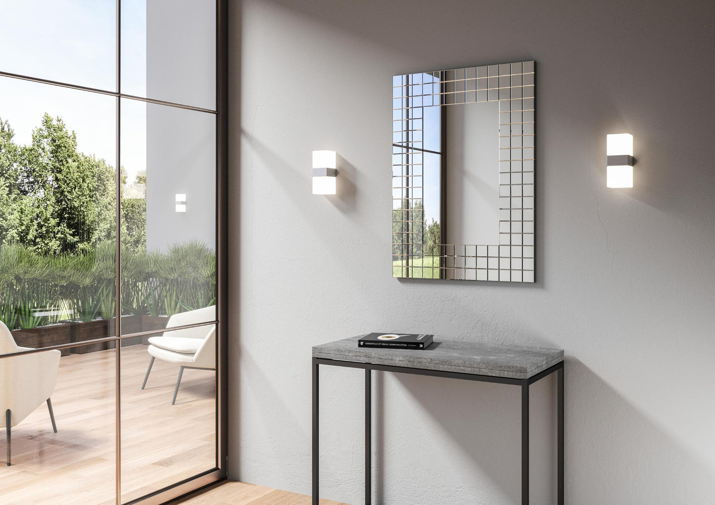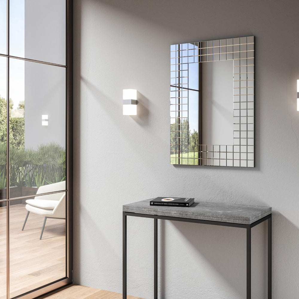 Villiago, uno specchio da parete dallo stile originale e dal design moderno. Composto da uno specchio centrale 60x35 cm e da altri specchietti dimensione 5x5 cm, che ricreano una trama geometrica adatta a qualunque stile di arredamento. Un elemento d'arredo che arricchirà con luminosità qualunque ambiente.Posizionabile orizzontalmente o verticalmente a seconda delle proprie preferenze.