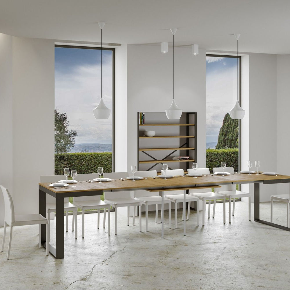Tavolo allungabile 90x120/380 cm Pieve Evolution Quercia Natura telaio Antracite