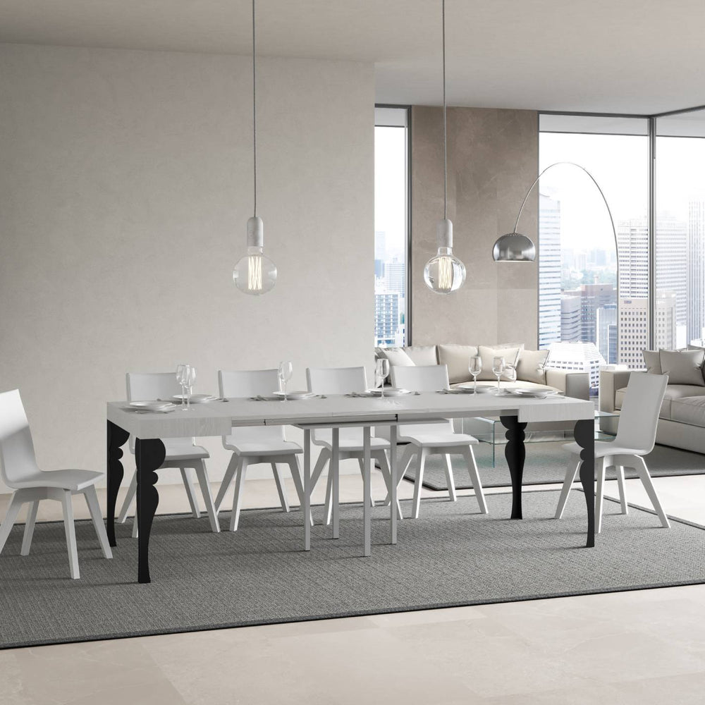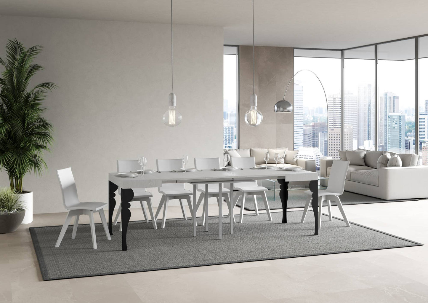 Tavolo allungabile Mira da 90 cm, dal design moderno dallo stile ricercato e stravagante, si adatta a qualsiasi stile di arredamento e si rivela la scelta ideale sia come tavolo da pranzo che come elemento d'arredo per il soggiorno, dove poter accogliere i propri ospiti con stile.Il tavolo allungabile Mira è in grado di estendersi progressivamente fino a 246 cm capace di ospitare 12 persone.Realizzato con pannelli in nobilitato, gambe in ferro, piano con lavorazione a Folding.Il sistema di estensione con guide telescopiche in alluminio rende il tavolo stabile e robusto anche se totalmente allungato, senza bisogno di ulteriori sostegni.Quando non utilizzate, le allunghe non trovano collocamento all’interno della struttura del tavolo e vanno quindi riposte altrove.Made in ItalyDimensioni:Tavolo chiuso: L.90 P.90 H.77 cmLunghezza con 1 allunga: 142 cmLunghezza con 2 allunghe: 194 cmLunghezza con 3 allunghe: 246 cm