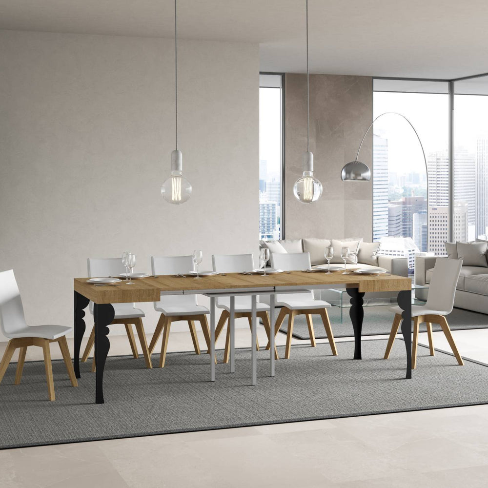 Tavolo allungabile 90x90/246 cm Mira Quercia Natura telaio Antracite