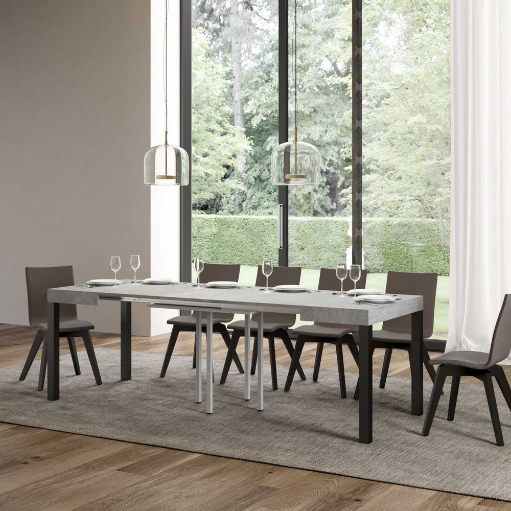 Tavolo allungabile 90x90/246 cm Noventa Cemento telaio Antracite